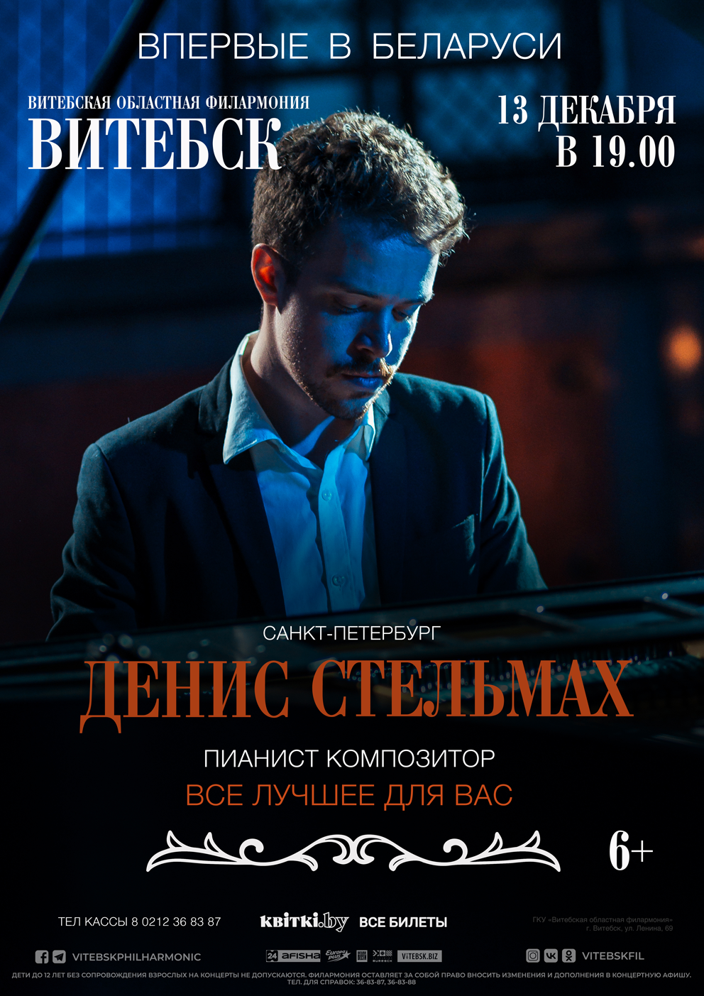 Впервые в Беларуси с программой «Все лучшее для Вас» выступит Денис Стельмах — композитор и пианист из Санкт-Петербурга, чьи альбомы активно набирают лайки в социальных сетях и входят в шорт-листы пабликов неоклассики.